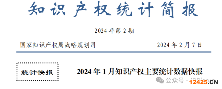 近日,國家知識產(chǎn)權(quán)局公布2024年1月知識產(chǎn)權(quán)主要統(tǒng)計數(shù)據(jù)快報: