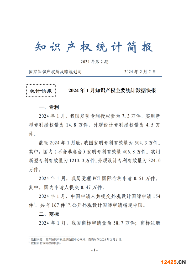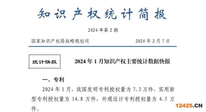 2024年1月知識產(chǎn)權(quán)主要統(tǒng)計數(shù)據(jù)快報