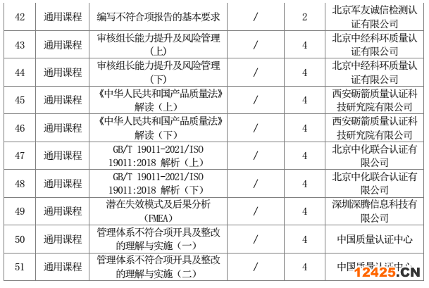 核心提示:為滿足認證人員繼續(xù)教育需求,中國認證認可協(xié)會(CCAA)近日公布2024年第1批繼續(xù)教育網(wǎng)絡課程,該批次共公布51門課程,涉及QMS、EMS、OHSMS、