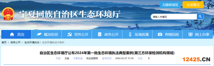 近日,寧夏回族自治區(qū)生態(tài)環(huán)境廳公布2024年第一批生態(tài)環(huán)境執(zhí)法典型案例,3家檢測機(jī)構(gòu)涉及出具的檢測報(bào)告不實(shí)等問題受到行政處罰,詳情如下: