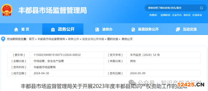 豐都縣市場(chǎng)監(jiān)督管理局關(guān)于開(kāi)展2023年度豐都縣知識(shí)產(chǎn)權(quán)資助工作的通知