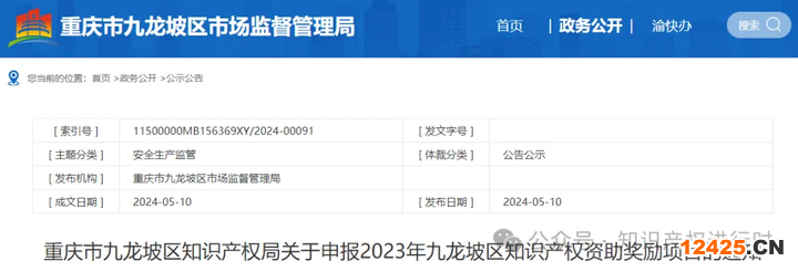 重慶市九龍坡區(qū)知識(shí)產(chǎn)權(quán)局關(guān)于申報(bào)2023年九龍坡區(qū)知識(shí)產(chǎn)權(quán)資助獎(jiǎng)勵(lì)項(xiàng)目的通知