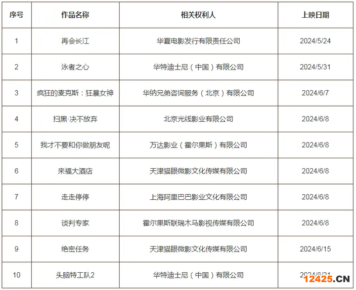 2024年度第四批重點作品版權(quán)保護預(yù)警名單(院線電影)