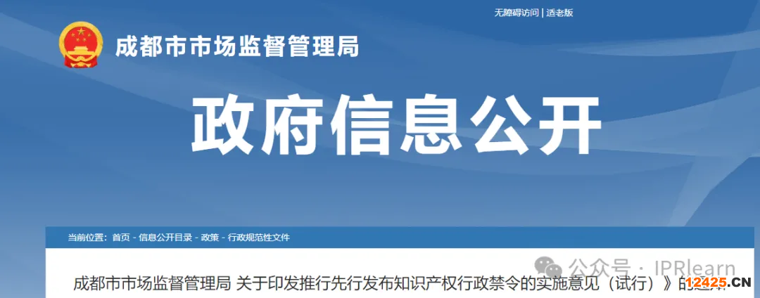 成都推行先行發(fā)布知識產(chǎn)權(quán)行政禁令!自2024年11月17日起施行