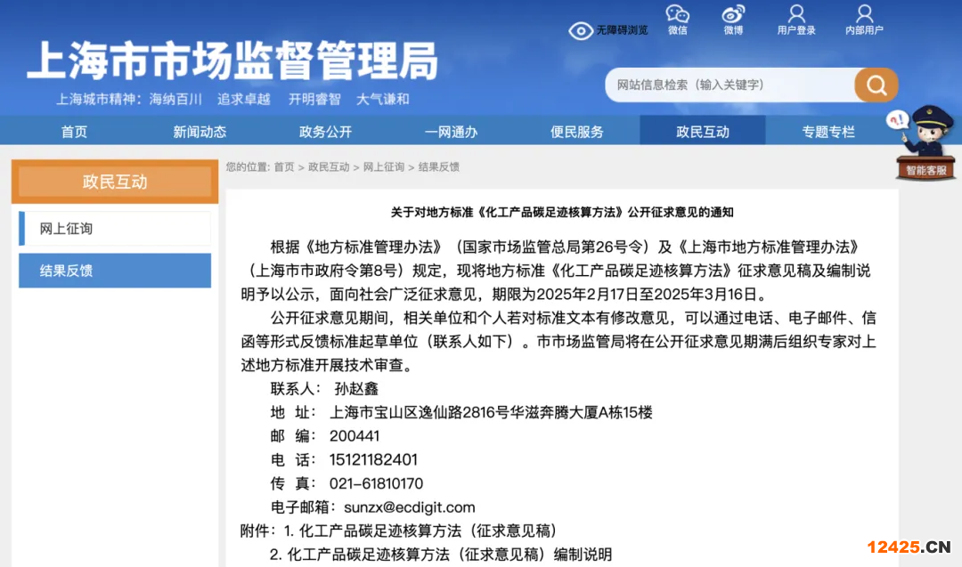 2月17日,上海市市場(chǎng)監(jiān)督管理局發(fā)布關(guān)于對(duì)地方標(biāo)準(zhǔn)《化工產(chǎn)品碳足跡核算方法》公開(kāi)征求意見(jiàn)的通知,原文內(nèi)容如下: