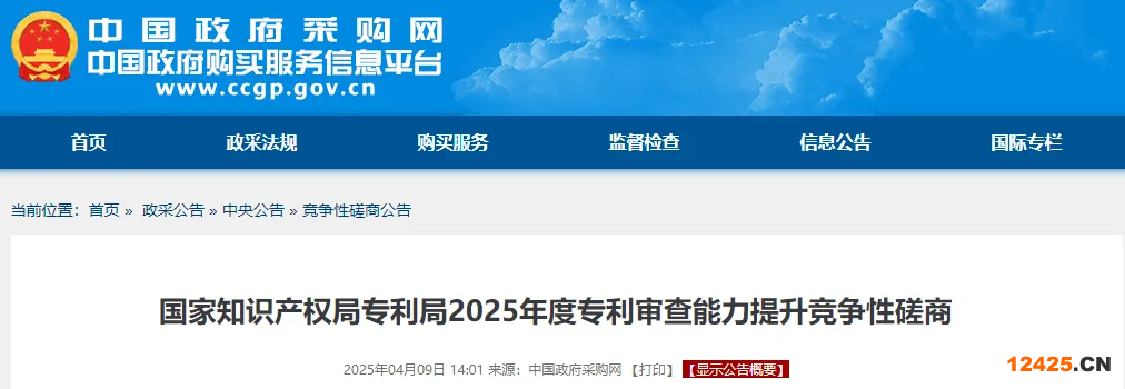 國家知識產(chǎn)權(quán)局專利局2025年度專利審查能力提升競爭性磋商