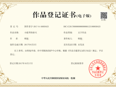 文件(非必須程序)→取得登記證書(作品登記和查閱應(yīng)收取一定費(fèi)用)