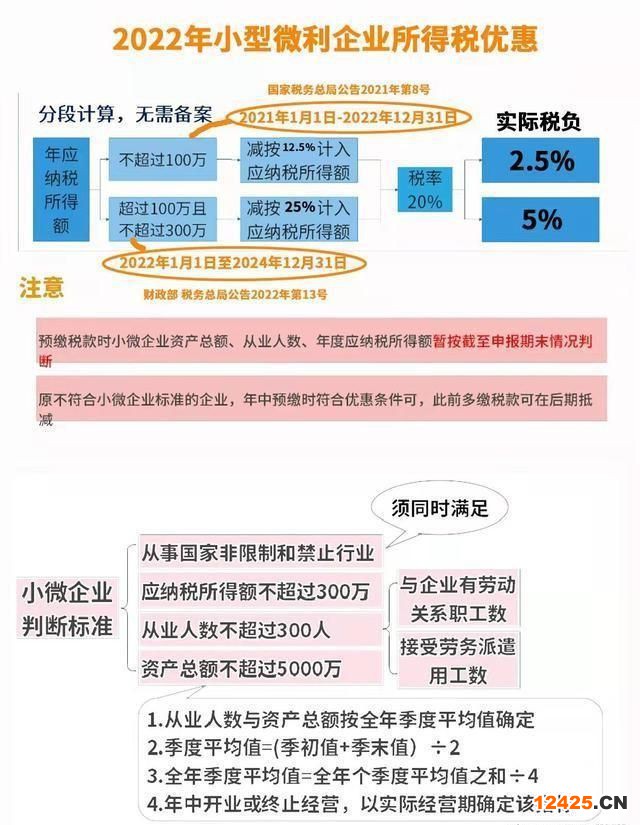 2022年財(cái)政部,稅務(wù)總局公布的第13號(hào)文件,大致內(nèi)容是對(duì)小微企業(yè)應(yīng)納稅所得額超過100萬,但不超過300萬的部分,減按25%計(jì)入應(yīng)納稅所得額,按20%的稅率繳納企業(yè)所得稅。其實(shí)不超過100萬的小微企業(yè)所得稅實(shí)際稅負(fù)是2.5%,超過100萬但不超過300萬的稅負(fù)是5%。如下圖: