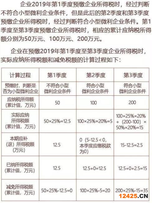 《關(guān)于實(shí)施小型微利企業(yè)普惠性所得稅減免政策有關(guān)問題的公告》中的第1條:2019年1月1日至2021年12月31日期間,對(duì)小微企業(yè)年度應(yīng)稅所得額低于100萬元的,扣除25%,作為應(yīng)稅所得額,20%為企業(yè)所得稅;年應(yīng)稅所得額在100萬元以上,不得超過三百萬元,減去50%,按20%計(jì)算。