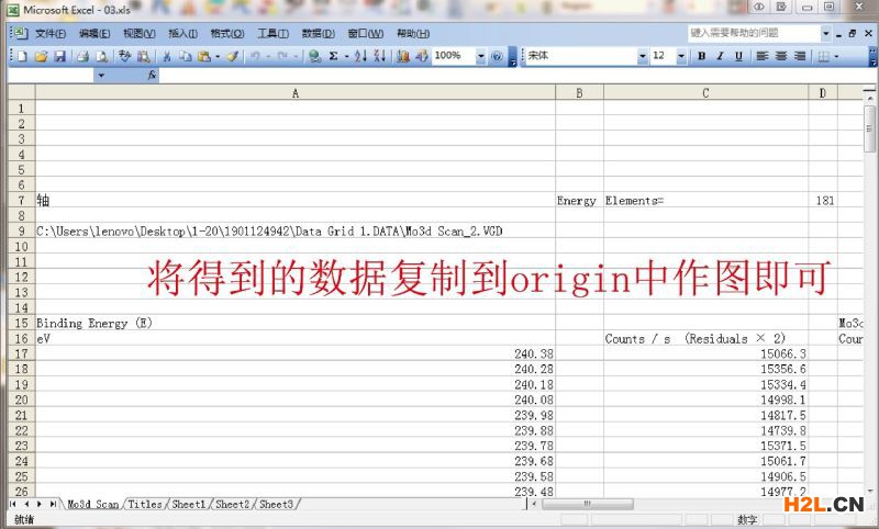 這個時候會自動彈出excel表格,將里面的數(shù)據(jù)復(fù)制到origin里面作圖即可。