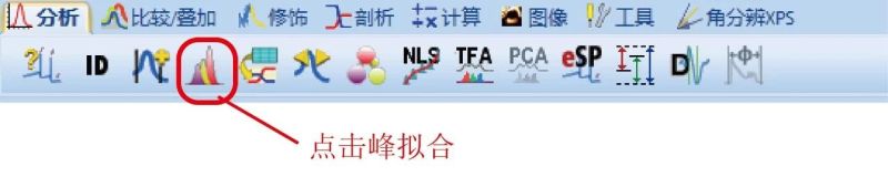 這個時候點(diǎn)擊工具欄的第四個“峰擬合”,彈出“峰擬合”的操作界面。