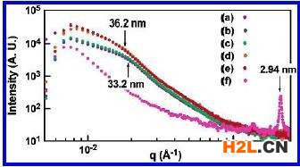 33.2nm,36.2nm,2.94nm這些數(shù)值,就是樣品中的某些特征長度。至于具體是什么長度,需要看上下文理解了。這里提到的應(yīng)該有液晶的層間距吧。