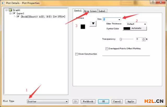 然后在線(xiàn)圖的空白處右擊打開(kāi)菜單,點(diǎn)開(kāi)如上圖所示的Plot Details(或者直接雙擊線(xiàn)圖中的線(xiàn))。將Line改成Scatter;Size改成0;Drop Lines中選擇Vertical。點(diǎn)擊OK完成就會(huì)出現(xiàn)下圖的標(biāo)譜圖線(xiàn)啦!