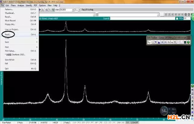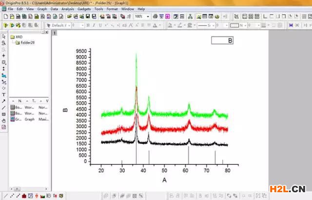 首先樣品經(jīng)過(guò)XRD分析儀分析后,可以輸出供Jade打開(kāi)的數(shù)據(jù)(當(dāng)然也可以直接輸出txt格式的數(shù)據(jù))。通過(guò)Jade打開(kāi)數(shù)據(jù)后,對(duì)比標(biāo)準(zhǔn)圖譜確認(rèn)數(shù)據(jù)是否可靠,可靠的數(shù)據(jù)我們將通過(guò)Jade輸出測(cè)試數(shù)據(jù)和標(biāo)準(zhǔn)圖譜的txt格式數(shù)據(jù),然后將txt格式數(shù)據(jù)通過(guò)excel過(guò)渡到origin里面,通過(guò)origin進(jìn)行圖形繪制。