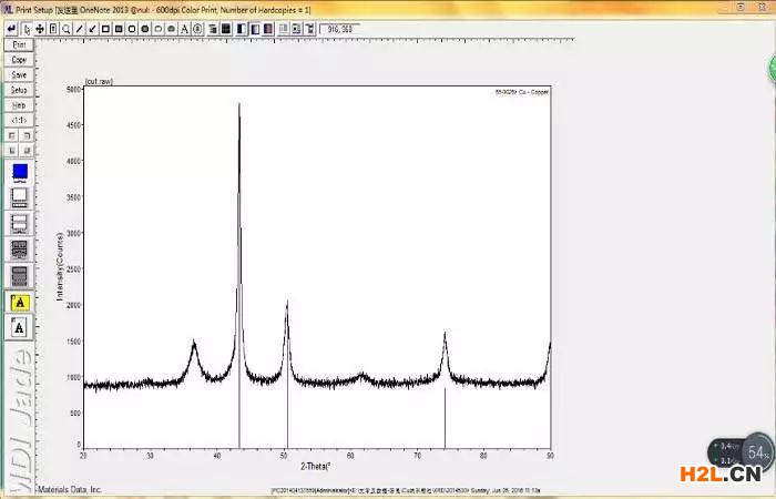 最后在File菜單下通過(guò)save你可以將測(cè)試數(shù)據(jù)進(jìn)行多種格式保存,也可以通過(guò)Print Setup得到圖六的XRD圖繼續(xù)進(jìn)行編輯!