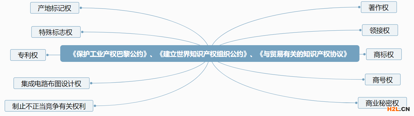 有關(guān)國(guó)際公約(《保護(hù)工業(yè)產(chǎn)權(quán)巴黎公約》、《建立世界知識(shí)產(chǎn)權(quán)組織公約》、《與貿(mào)易有關(guān)的知識(shí)產(chǎn)權(quán)協(xié)議》等)確認(rèn)的知識(shí)產(chǎn)權(quán)包括著作權(quán)、鄰接權(quán)、商標(biāo)權(quán)、商號(hào)權(quán)、商業(yè)秘密權(quán)、產(chǎn)地標(biāo)記權(quán)、特殊標(biāo)志權(quán)、專利權(quán)、集成電路布圖設(shè)計(jì)權(quán)以及與制止不正當(dāng)競(jìng)爭(zhēng)有關(guān)的權(quán)利等各種權(quán)利。