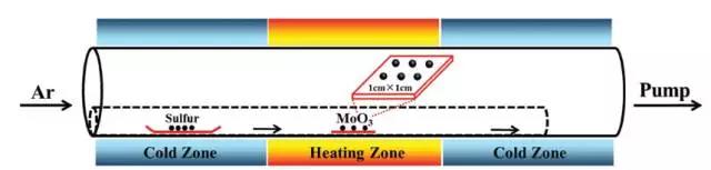 圖示:CVD工藝中硫源與鉬源放置的相對位置示意圖