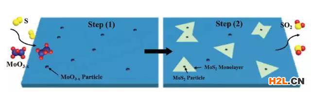 圖示:MoS2從零維到二維的兩步生長過程示意圖