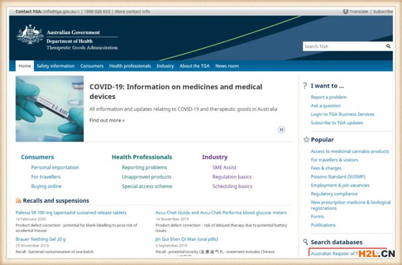 選擇方框中的“Australian Register of Therapeutic Goods (ARTG)”開始搜索