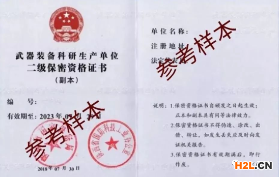 武器裝備科研生產單位保密資格證書分為正本和副本,正本和副本具有同等法律效力。證書樣式由國家保密局會同國家國防科技工業(yè)局、中央軍委裝備發(fā)展部統一制定。