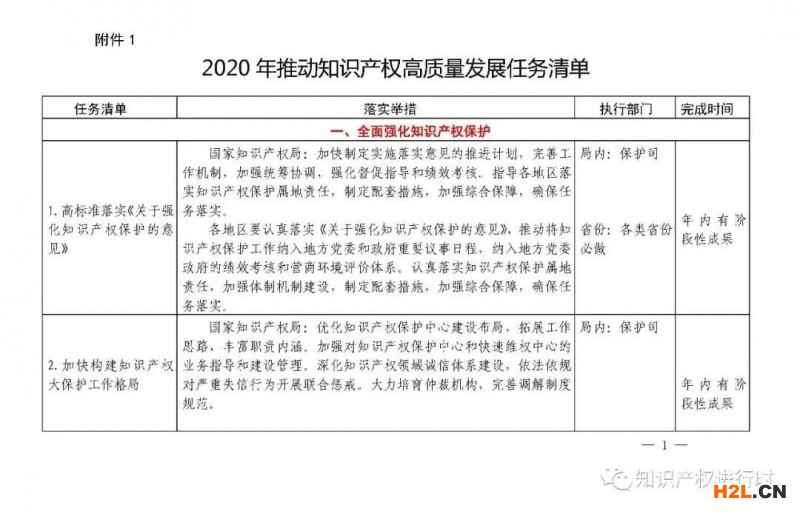 推動知識產(chǎn)權(quán)高質(zhì)量發(fā)展年度工作指引(2020)