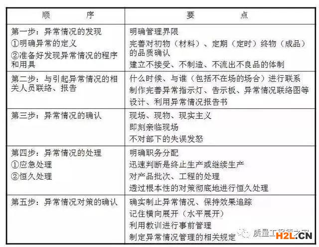 生產(chǎn)現(xiàn)場(chǎng)的異常管理就是指為了能夠檢測(cè)、控制、解決生產(chǎn)過程中的錯(cuò)誤、突發(fā)和失控狀況,而制定的一系列措施和管理手段。在現(xiàn)場(chǎng)管理中,針對(duì)每天出現(xiàn)的異常問題,快速應(yīng)對(duì)并及時(shí)處理,防止其再發(fā)生是很重要的,因此現(xiàn)場(chǎng)管理也稱為異常管理。管理的本質(zhì)就是在順利的情況下,一旦有什么異常,則盡快地發(fā)現(xiàn)并采取措施。下面主要介紹異常管理工具方法。