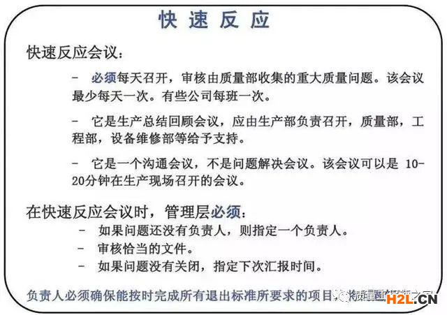 目的意義:標(biāo)準(zhǔn)化的應(yīng)對(duì)重大的內(nèi)/外部質(zhì)量問題的反應(yīng)流程;通過例會(huì)加強(qiáng)溝