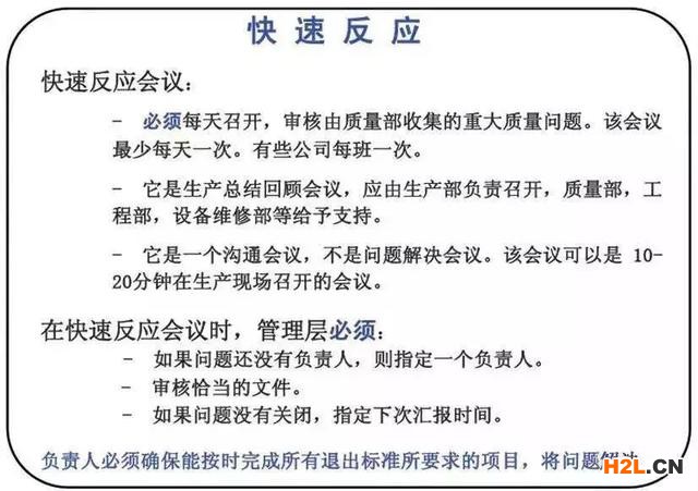 工廠管理人員和主管針對工位應評審相同的項目工位問題、質量關注點;評估班組長的工作內容生產系統(tǒng)問題。