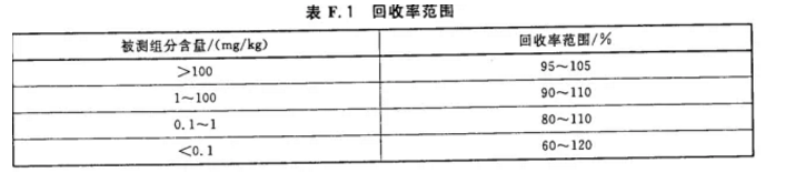 國家標(biāo)準(zhǔn)GB/T 27404-2008《實(shí)驗(yàn)室質(zhì)量控制規(guī)范食品理化檢測》中對回收率試驗(yàn)做了如下規(guī)定: