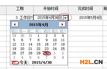 開始時(shí)間默認(rèn)是系統(tǒng)當(dāng)天時(shí)間,完成時(shí)間是工具自動(dòng)根據(jù)工期算好的。如果要修改開始時(shí)間,可以點(diǎn)擊圖1 中標(biāo)紅的按鈕就會(huì)出現(xiàn)日期選擇框。也可以先填寫完成時(shí)間,開始時(shí)間會(huì)根據(jù)工期自動(dòng)進(jìn)行計(jì)算。