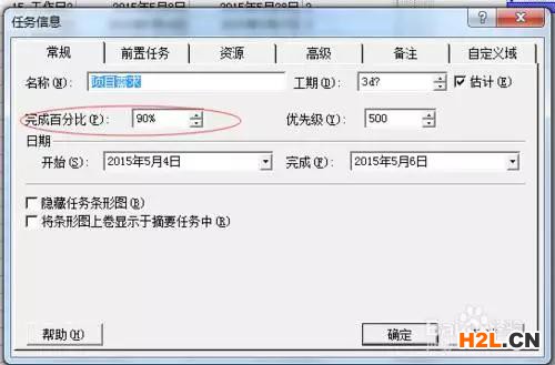 如下截圖1,雙擊標(biāo)紅框中的任意區(qū)域,會(huì)出現(xiàn)圖2,在圖2 的標(biāo)紅中,填寫上“完成百分比”,點(diǎn)擊確定就可以了。這時(shí)候你就會(huì)發(fā)現(xiàn)右邊的甘特圖發(fā)生如下圖3的變化。