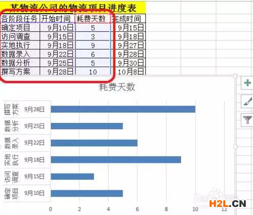4 . 點(diǎn)擊如圖的箭頭 - 把開始時(shí)間調(diào)整到耗費(fèi)天數(shù)的上面。