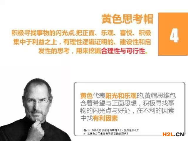 答案當(dāng)然是肯定的。很顯然,如果他使用六頂思考帽的思維方式,并且遵循在同一時(shí)間只做一件事的規(guī)則的話,那么,他的思路馬上就清晰了,思維也打開了,計(jì)劃也在不斷的思考中順其自然的出爐了。