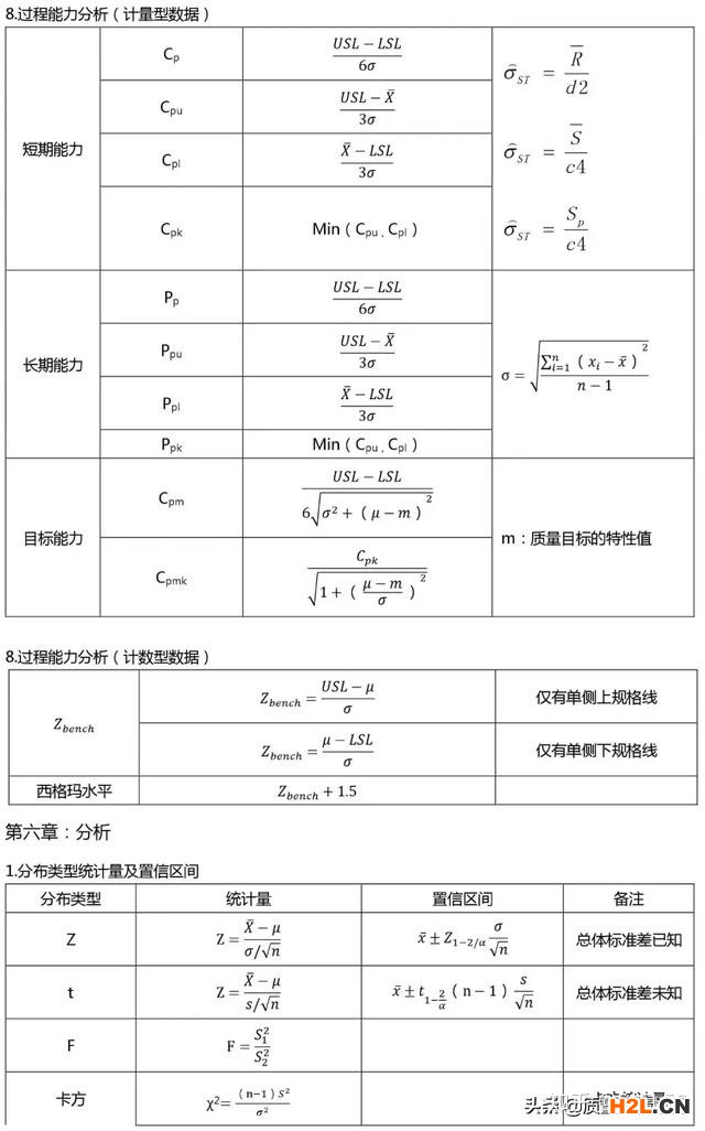 質(zhì)量管理必備公式整理匯總大全