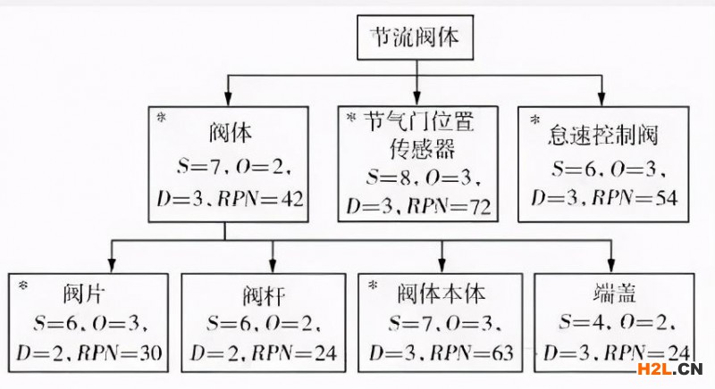 每種故障模式都會有相應的故障后果;分析故障后果時,應盡可能分析出故障的最終影響,即最嚴重的影響;閥體的潛在故障后果為發(fā)動機無力、燃油消耗率高、怠速高。