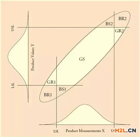 第一種辦法:堅(jiān)持100%檢驗(yàn),那么就要改進(jìn)測量系統(tǒng),使得雙變量正態(tài)分布中的橢圓扁到像一條直線一樣,這時PGS與PBR都會非常高。