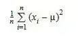 在考慮離散度時(shí),值是否大于或小于平均值并不重要,重要的是它們離平均值有多遠(yuǎn)。為了去掉方向(符號(hào)),我們把每一個(gè)差平方,然后把它們加在一起,除以n得到平均值: