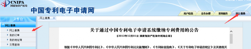 繳費時,先通過中國專利電子申請網(wǎng)登陸對外服務(wù)-網(wǎng)上繳費-以國家申請?zhí)柪U費,按照要求填寫就可進行繳費了。