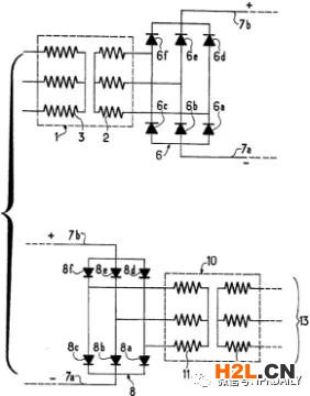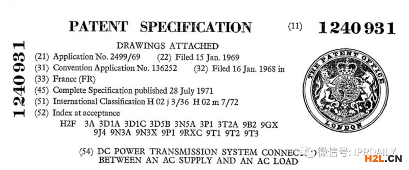 ABB公司是直流輸電技術(shù)的鼻祖,擁有大量直流輸電相關(guān)專利,下面這件專利是ABB公司于1969年申請的直流電力傳輸系統(tǒng),其通過在交流電源和負(fù)載之間構(gòu)建整流橋、逆變橋?qū)崿F(xiàn)直流電力傳輸,而橋電路應(yīng)用的是可控半導(dǎo)體器件晶閘管。