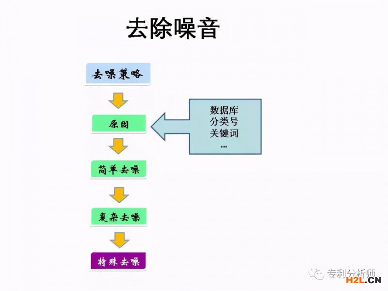 去除檢索過(guò)程帶來(lái)的噪音需要弄清楚噪音的來(lái)源。一般而言,不相關(guān)的文獻(xiàn)是由于數(shù)據(jù)庫(kù)本身、關(guān)鍵詞或分類(lèi)號(hào)等原因引起的。檢索的時(shí)候,可以通過(guò)閱讀專(zhuān)利文獻(xiàn),提取噪音詞匯或者噪音分類(lèi)號(hào),批量去噪音,非常好用哦。