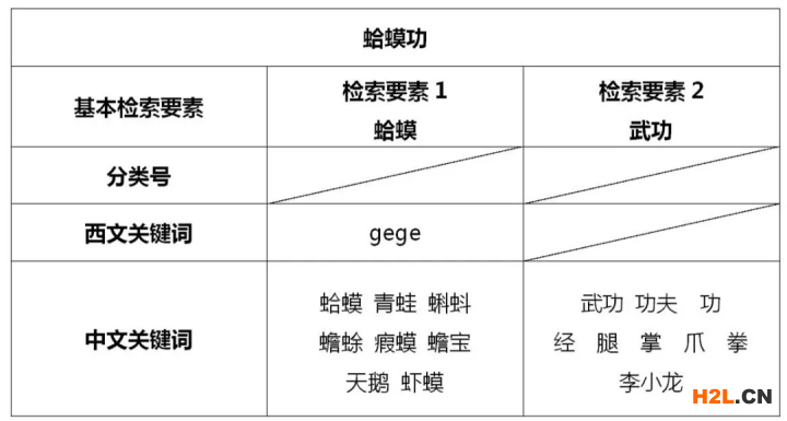 通過(guò)上面的檢索要素表,針對(duì)“蛤蟆功”,我們可以構(gòu)建檢索式1: