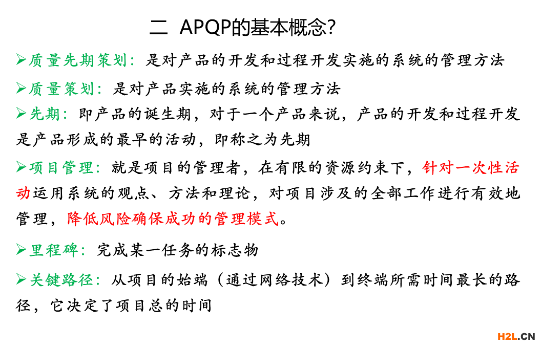 APQP=Advanced Product Quality Planning產(chǎn)品質(zhì)量先期策劃是一種結(jié)構(gòu)化的方法,用來(lái)確定和制定確保某產(chǎn)品使顧客滿(mǎn)意所需的步驟。
