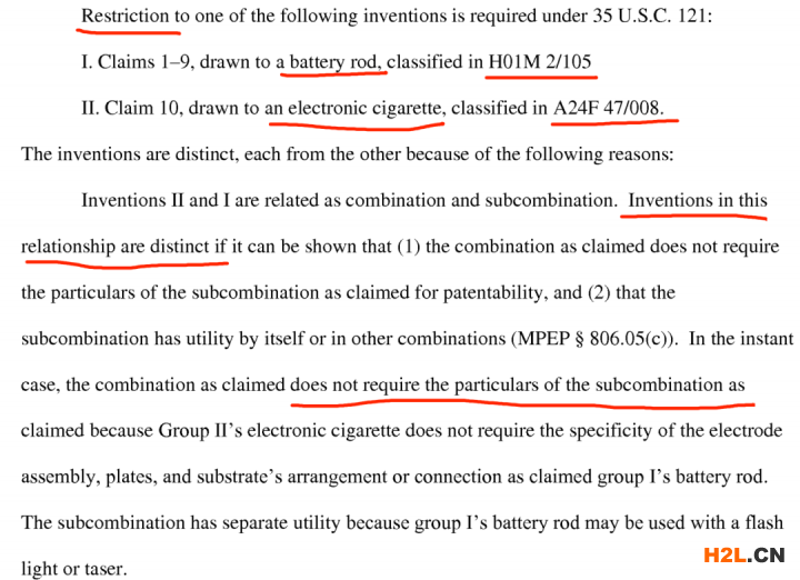 案例4——巴黎公約途徑進入美國國家階段,且兩組權(quán)利要求所要求保護的技術(shù)方案為可區(qū)分的(distinct)——限制性要求(Requirement for Restriction):