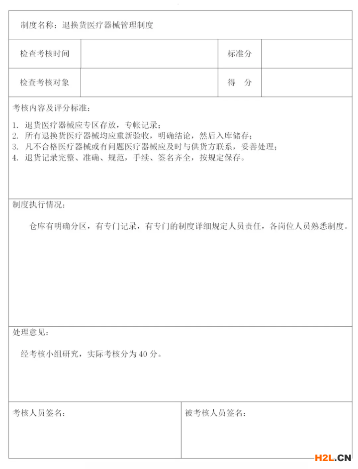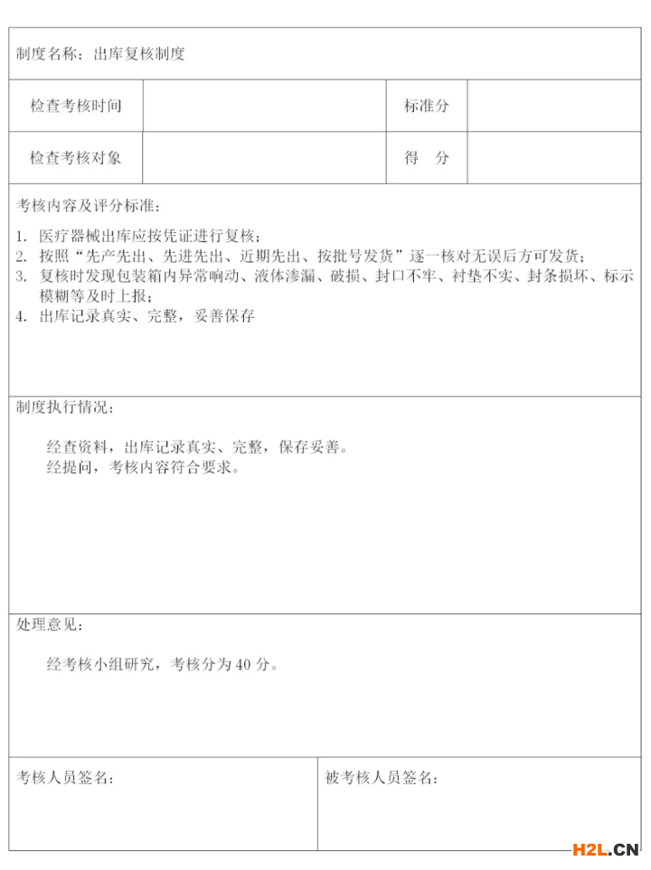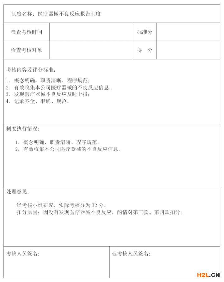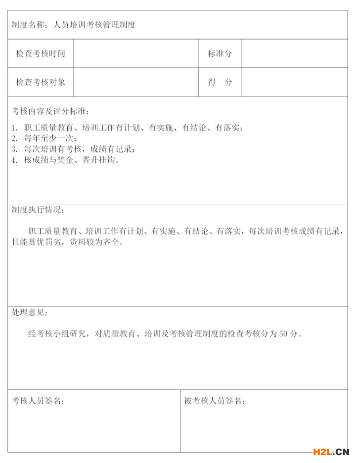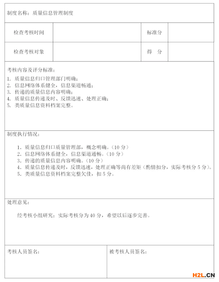 │質(zhì)量管理制度執(zhí)行情況考核記錄表│