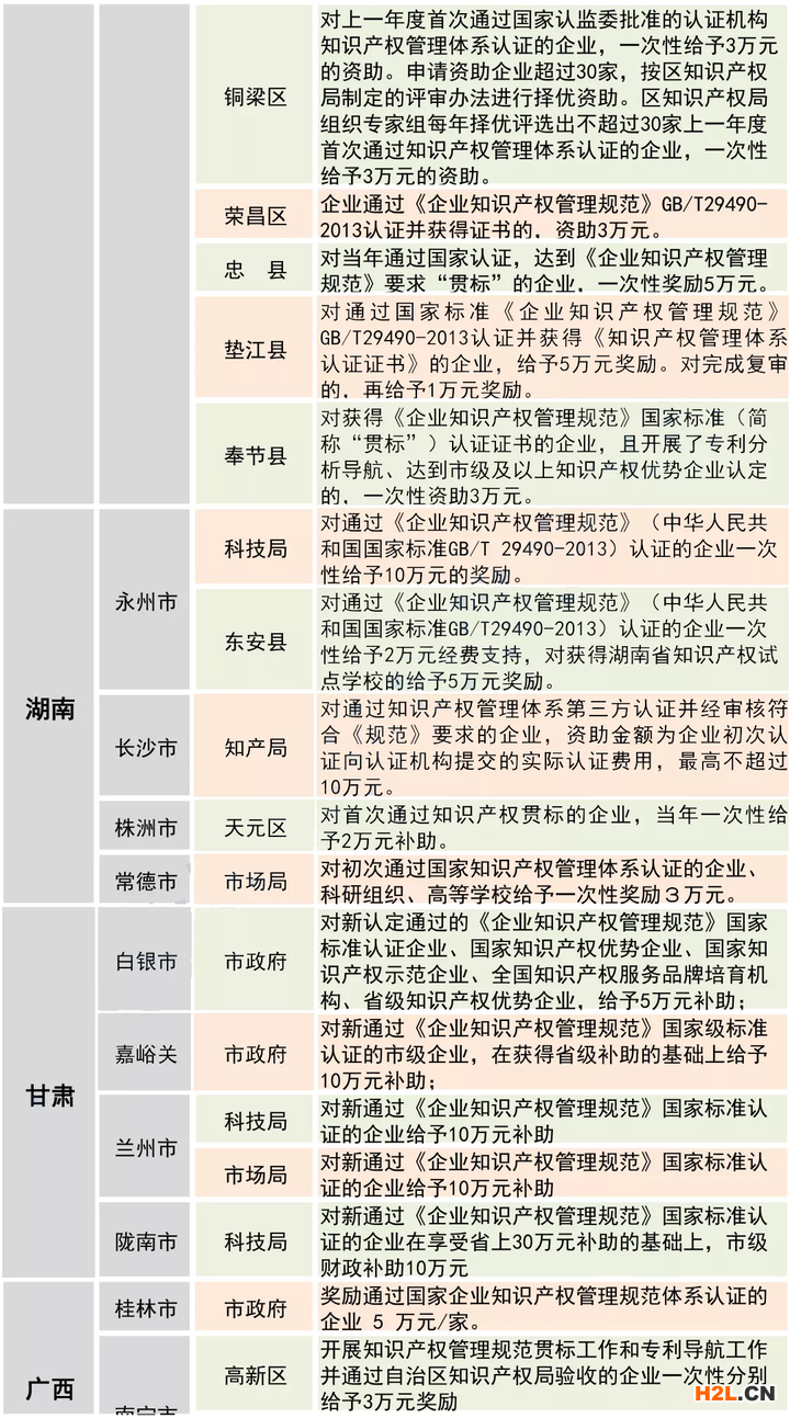 自2014年開始各級(jí)部門針對(duì)知識(shí)產(chǎn)權(quán)貫標(biāo)企業(yè)量身打造了多項(xiàng)扶持政策,如知識(shí)產(chǎn)權(quán)優(yōu)勢企業(yè)培育、知識(shí)產(chǎn)權(quán)示范企業(yè)評(píng)選等。通過貫標(biāo)的企業(yè)申報(bào)各類項(xiàng)目將給予重點(diǎn)支持和加分,如專利運(yùn)營、專利導(dǎo)航、名牌產(chǎn)品申報(bào)等;