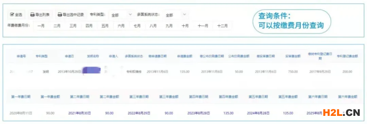查詢結(jié)果:每個(gè)專利的主要繳費(fèi)日期和繳費(fèi)金額