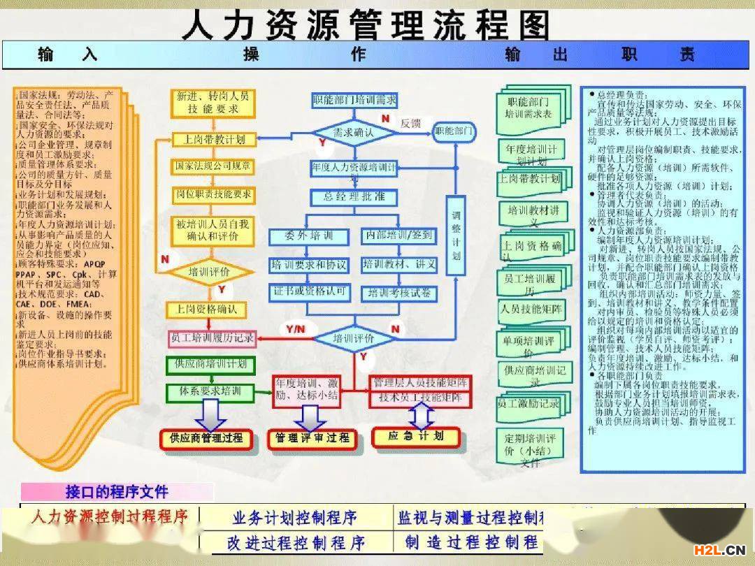 在確定完過程和過程關(guān)系及相互作用之后,還要確定每個過程的范圍及運作方式,過程流程圖可以幫助我們實現(xiàn)對過程運作的準(zhǔn)確定義。其中,我們可以將單個過程流程按層級分為過程、子過程及活動,對應(yīng)的文件層級可以設(shè)置為程序、管理規(guī)范、作業(yè)指導(dǎo)書及記錄表單。下面為大家整理和展示了18個典型的一級過程流程圖,包括流程的輸入、輸出,過程活動及操作說明等。