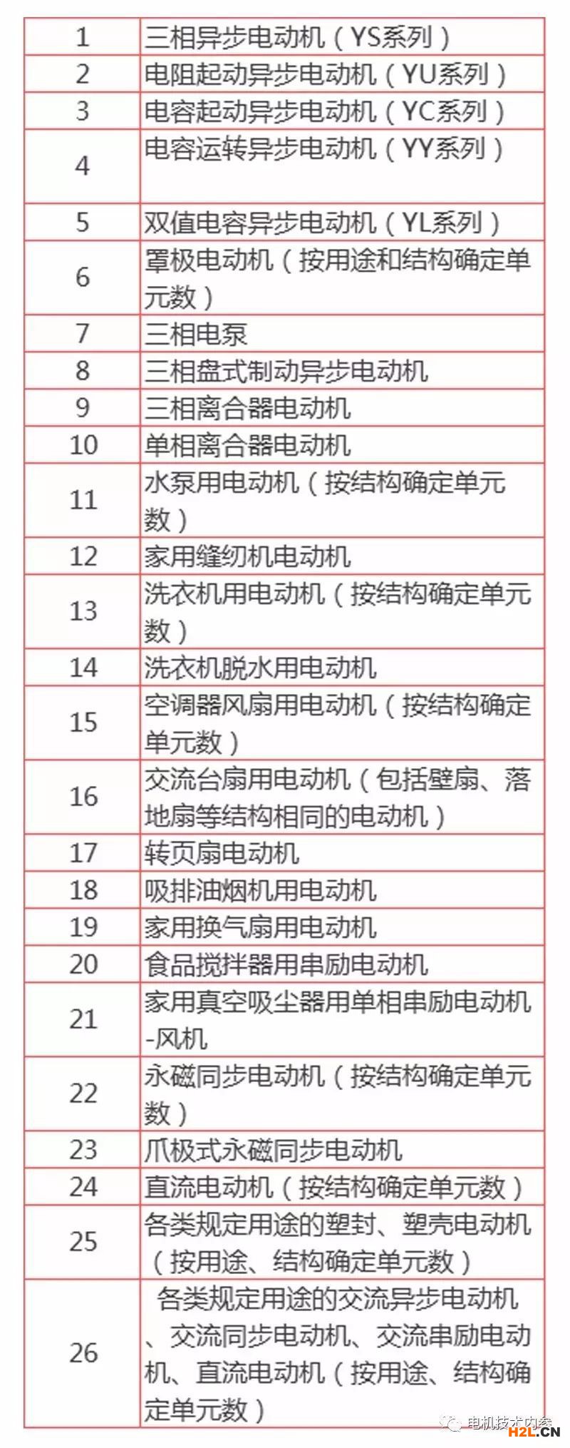 未列入CCC認(rèn)證目錄的 1.1KW 以下電機(jī)產(chǎn)品清單:
