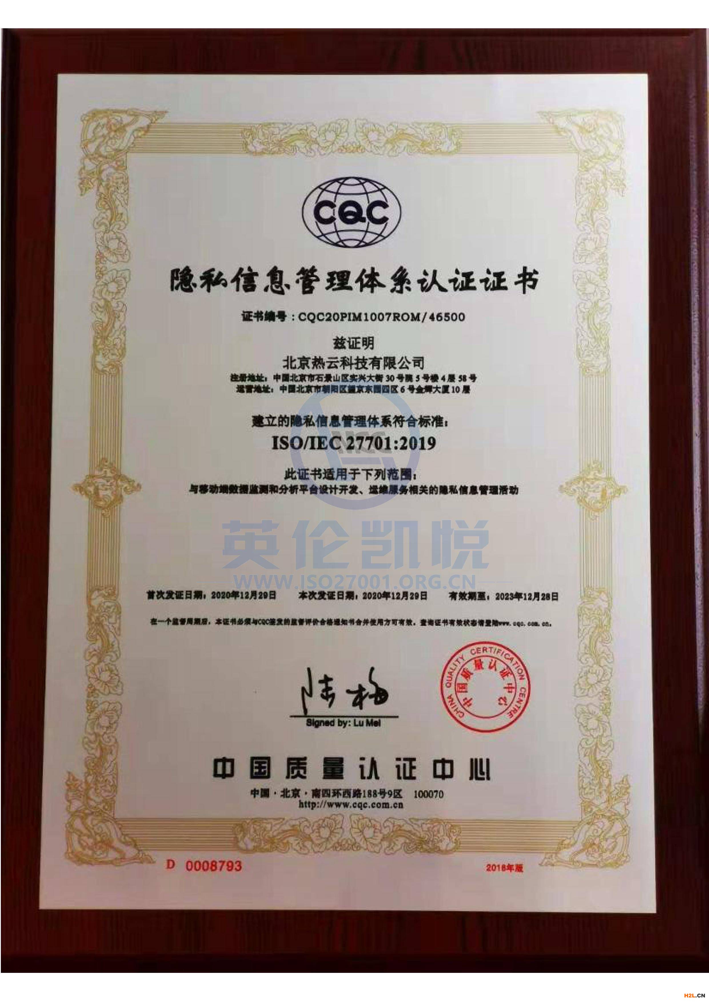 ISO27701隱私信息管理體系證書