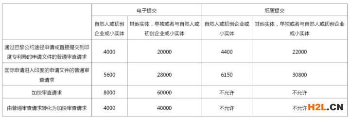 表1 不同專利審查類型的費(fèi)用(單位:印度盧比)